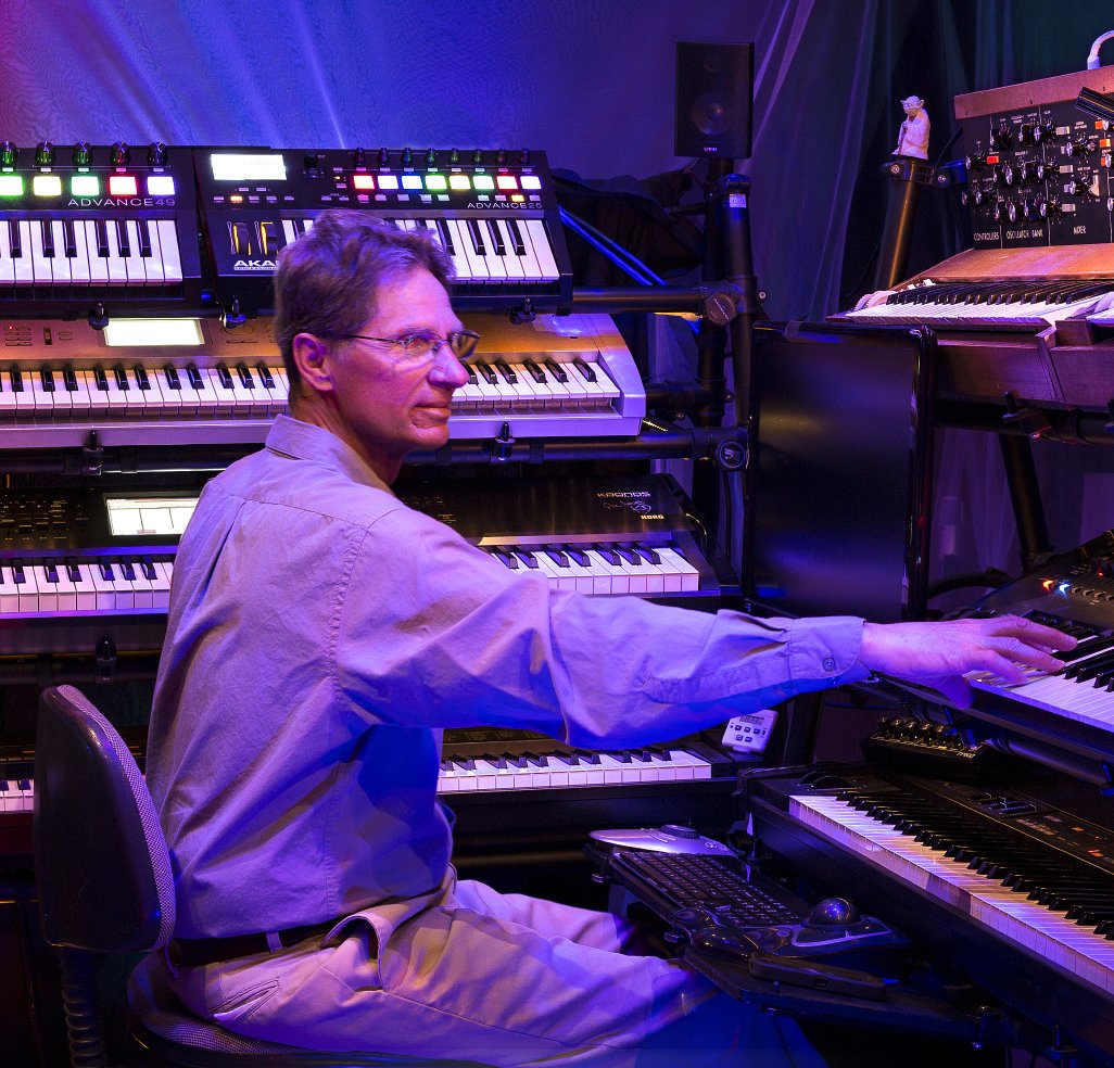 In the studio I have an assortment of analog and digital synthesizers as well as an extensive orchestral digital sample library. Analog synths are very warm and full. Digital synths have a bright, crisp and very complex sound structure. For personal music pieces, the sampler enables me to digitally record a person’s voice and then play a choir of their own voice – in pitch – when and where appropriate.